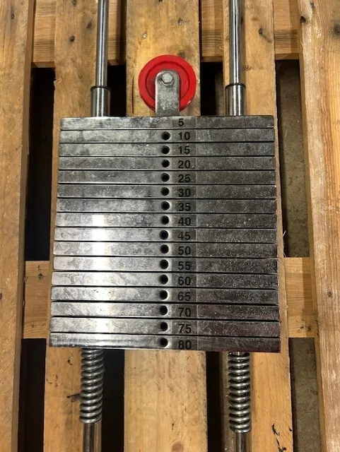 Käytetty 80 kilon painopakka tee-se-itse henkilölle. Mukaan kuvissa näkyvät johteet (pituus 1785 mm) ja muut osat. Rakenna tästä unelmiesi kuntosalilaite. Toimituskin on mahdollista!